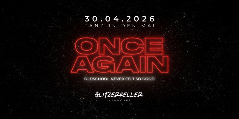 Datum30.04.2026 · 22:00 UhrLocationGlitzerkeller · HannoverEinlassAb 25 · AusweispflichtSag's deiner GangTickets Am 30.04. feiern wir TANZ IN DEN MAI mit ONCE AGAIN im Glitzerkeller Hannover. RnB & Hip Hop Classics, die ganze Nacht, ab 25, eine Crowd mit Geschmack und genau der Sound, für den man am nächsten Morgen gerne müde ist. Wer dabei war, ... Weiterlesen